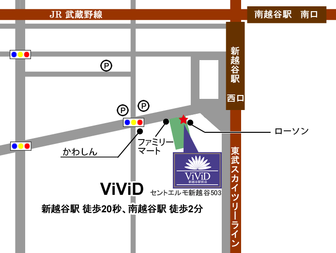 アクセス | 新越谷駅西口から徒歩20秒、南越谷駅から徒歩2分 新越谷駅西口を出て斜め左方向マンション5階。 【セントエルモ新越谷503号室】 |